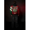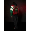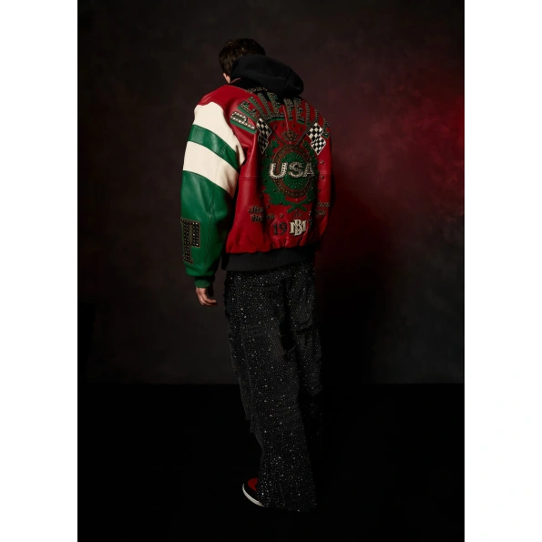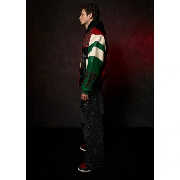 The striking blend of Cabernet, Black, and Jet Green gives this jacket a commanding presence. The deep red tones evoke energy and dominance, while the black and green accents add contrast, depth, and modern edge.