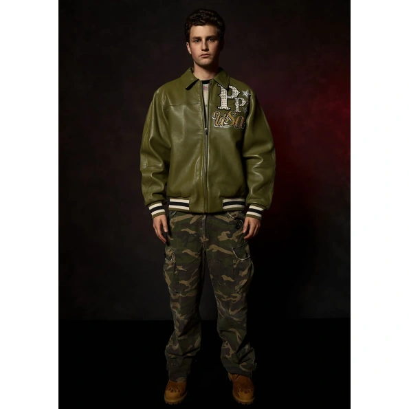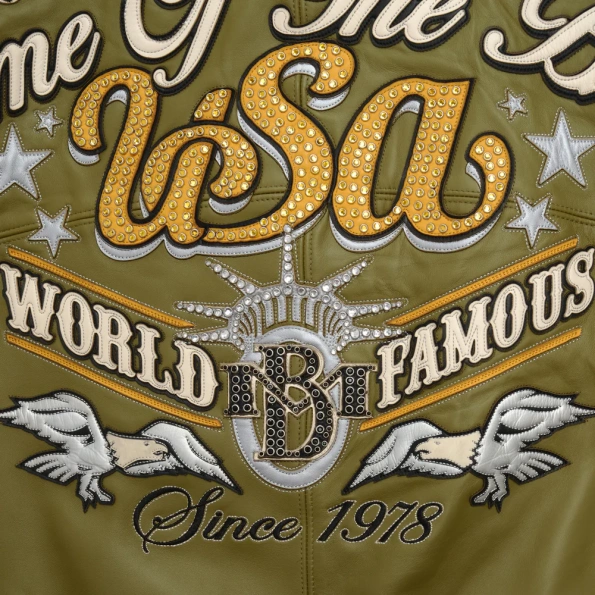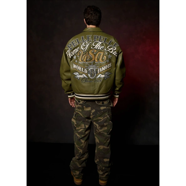 Pelle Pelle Stars and Stripes Olive Leather Jacket: Where Patriotism Meets Streetwear Mastery